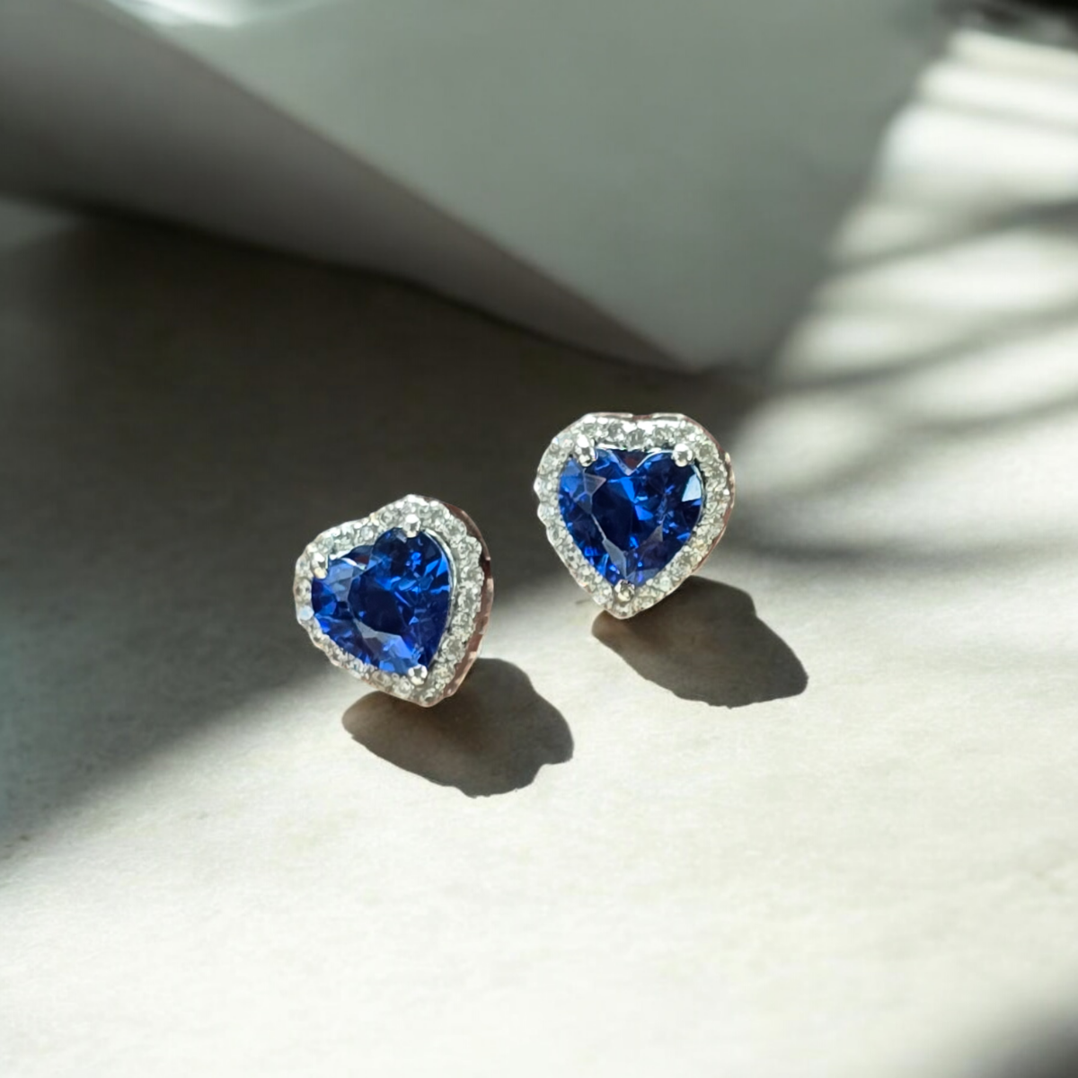 A breathtaking pair of royal blue heart shaped earrings that are crafted to make your heart melt. These pure 925 silver earrings can be paired with any attire but stands out best in white. Bring in the spirit of the heart trend of 2024 and are adorned with a stunning blue heart at its core.