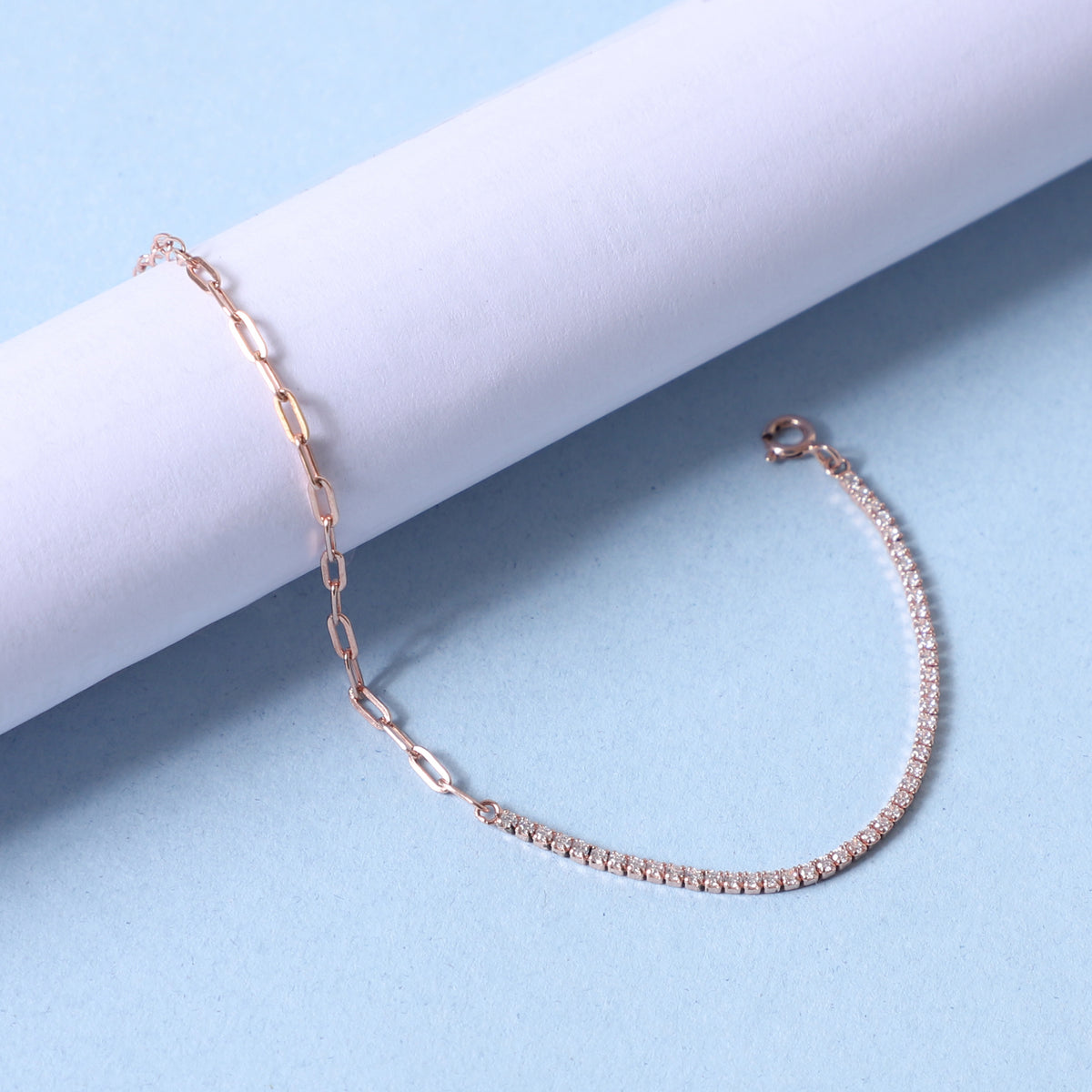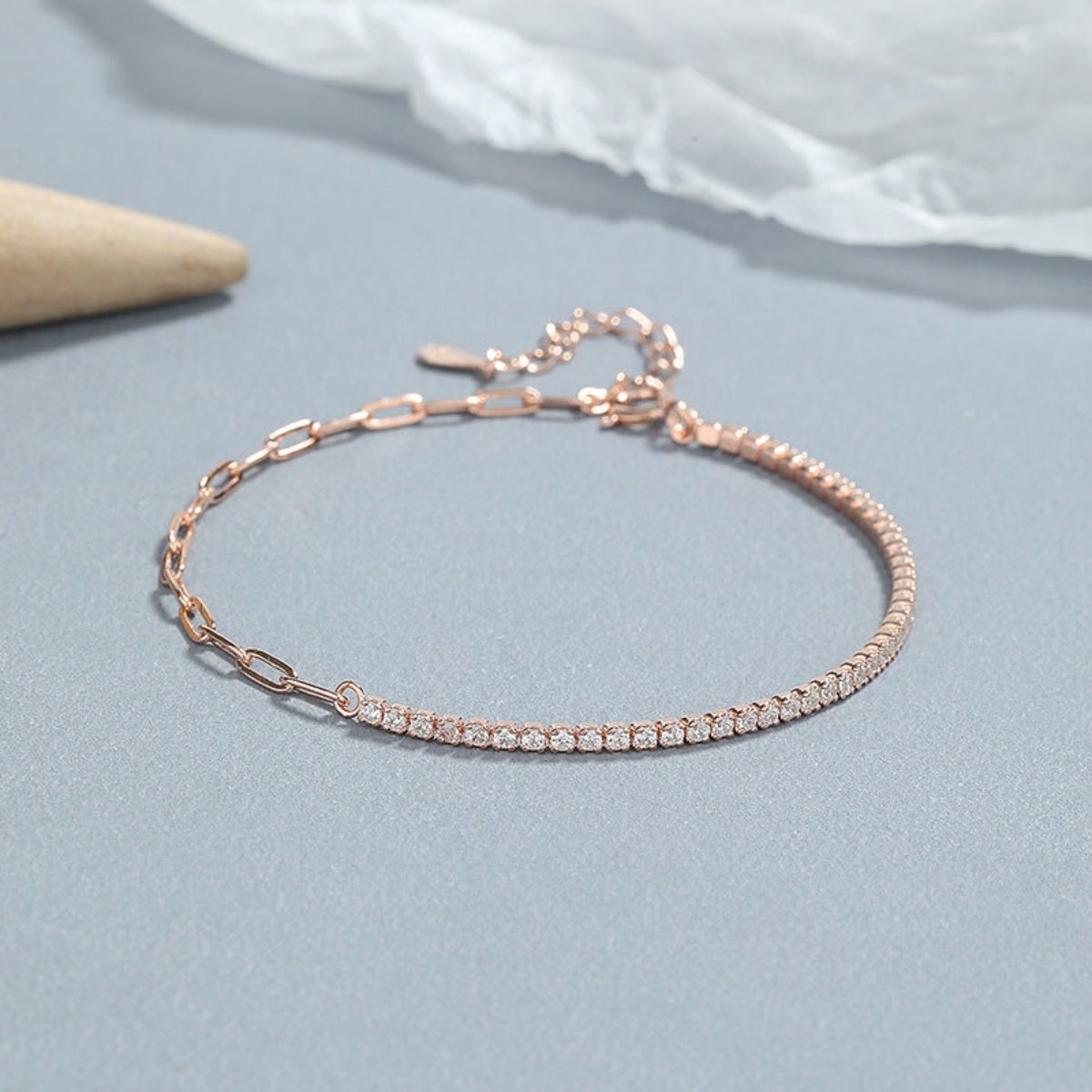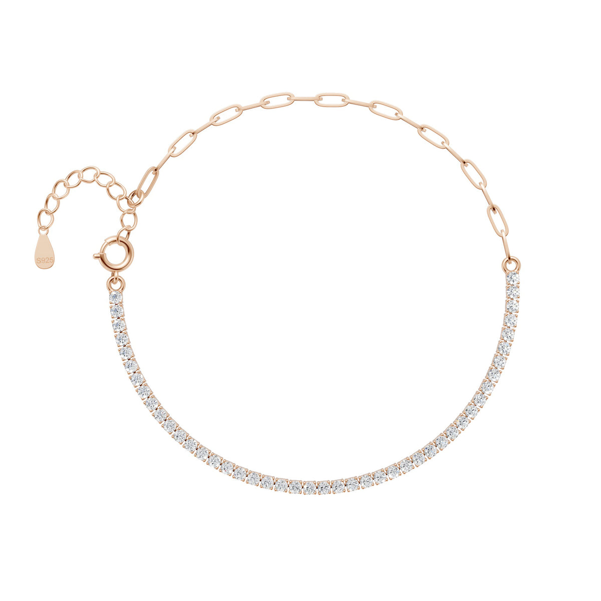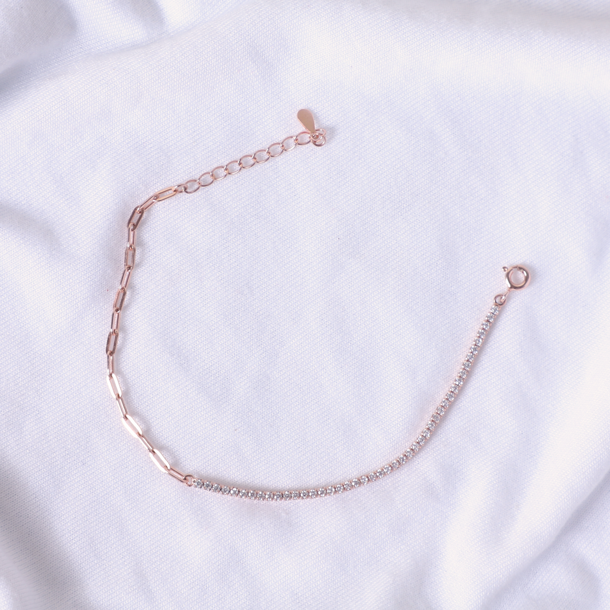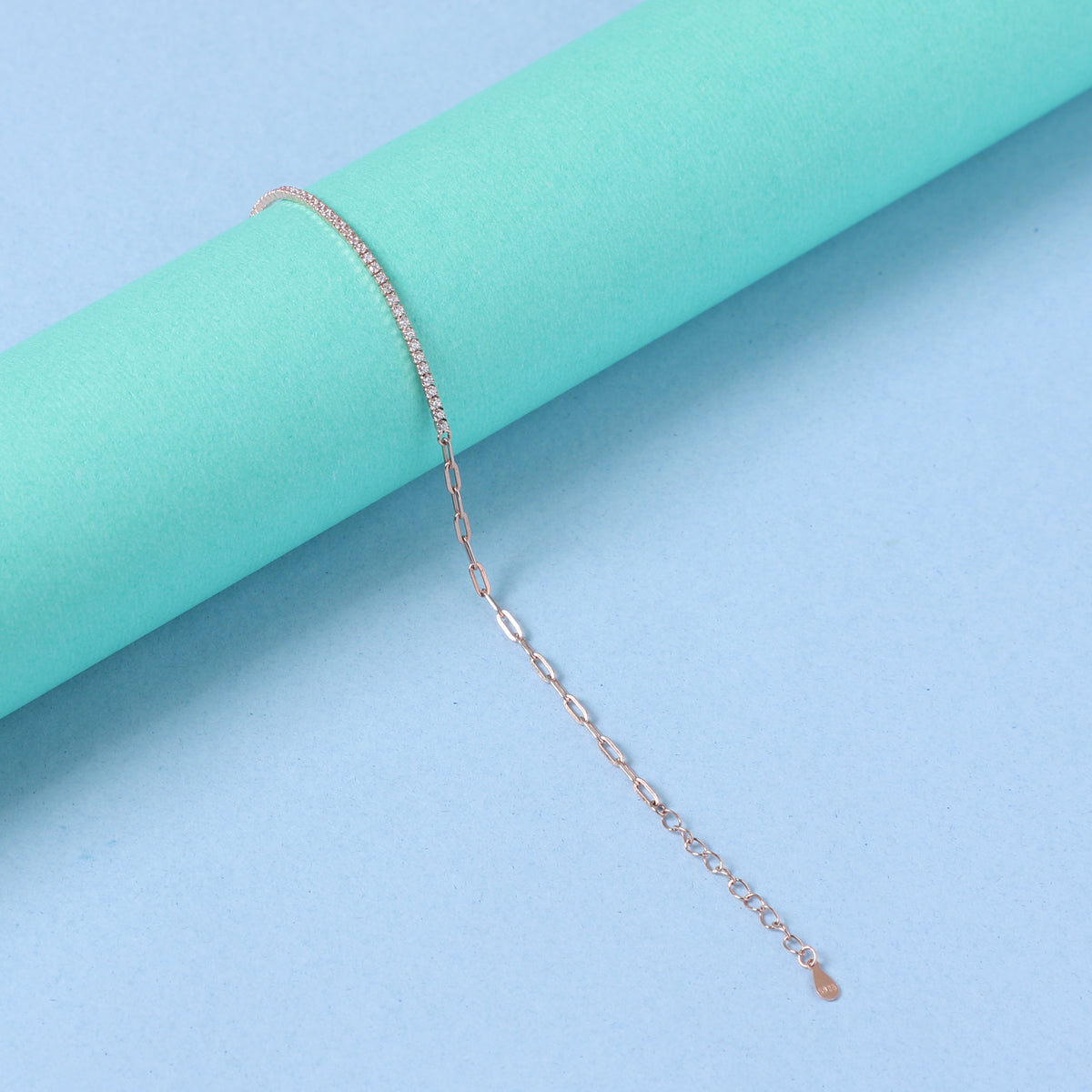A modern twist to the classic tennis bracelet set in pure 925 silver! The Back Hand Tennis Necklace features a unique and delicate design that blends a trendy link chain with a gentle tennis string which can be styled in many unique ways. Show the tennis string side or the link chain side or show a blend of both. So versatile, so dynamic, just like you!