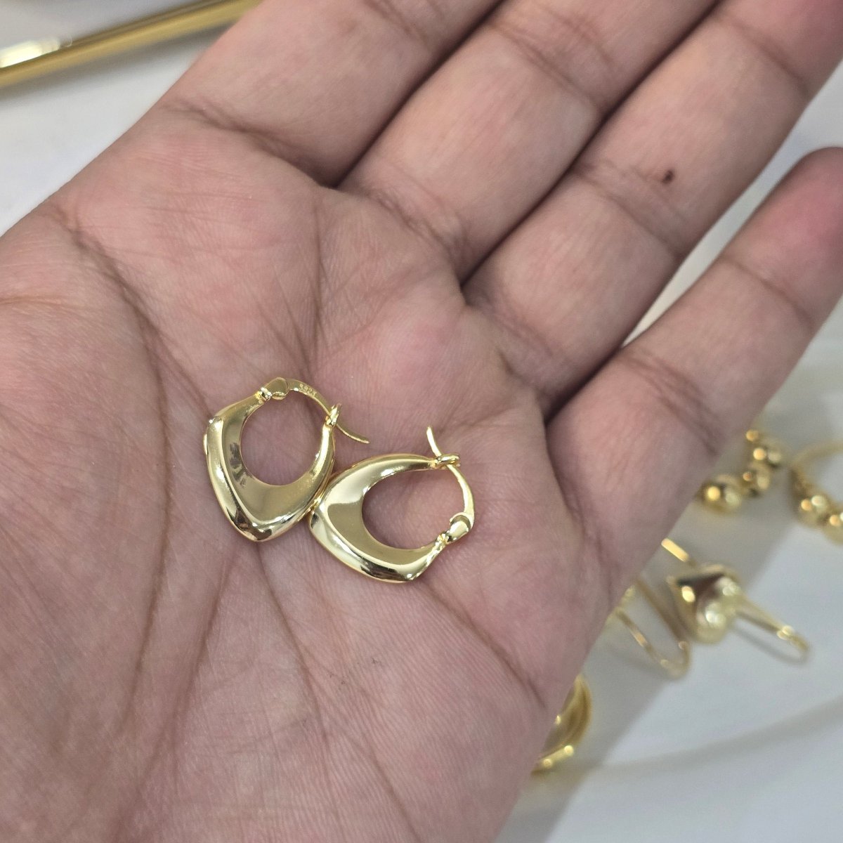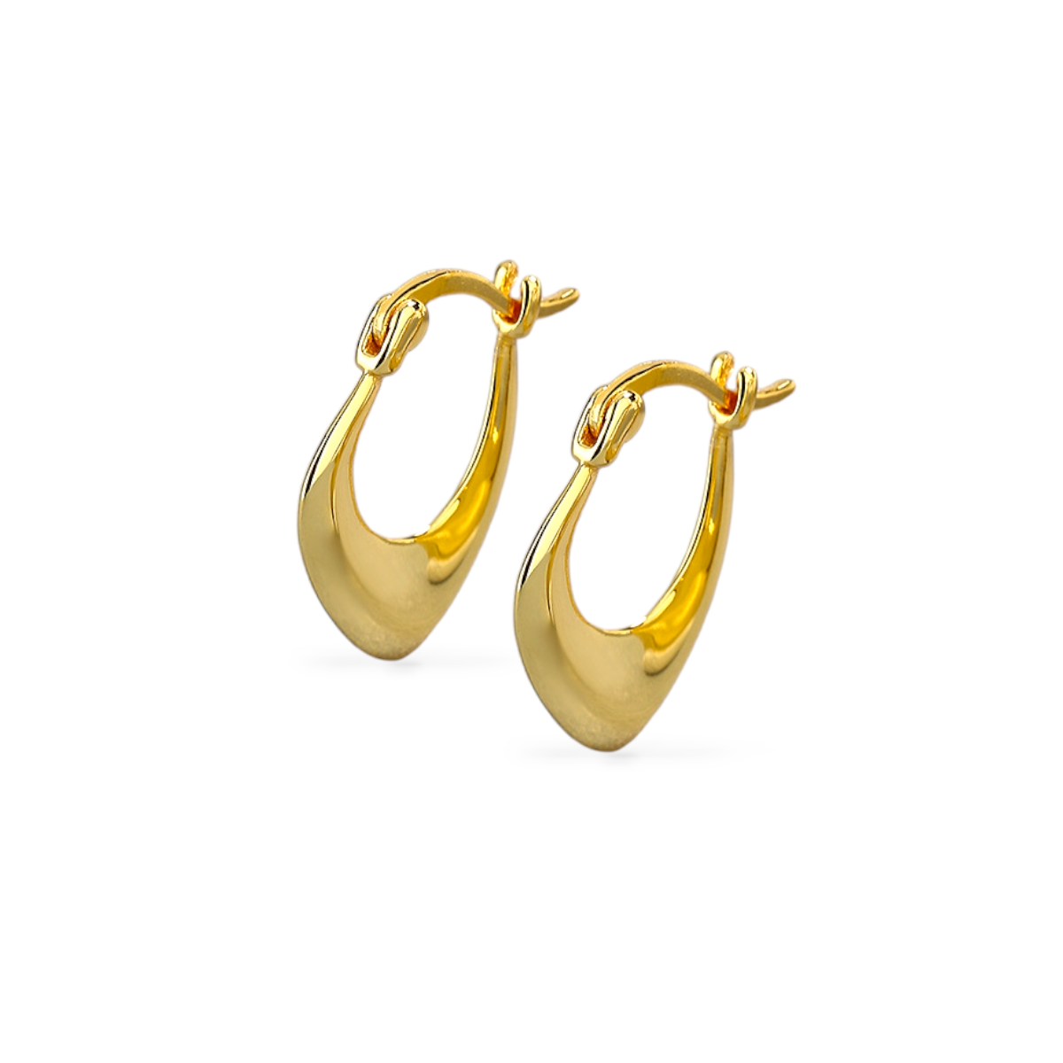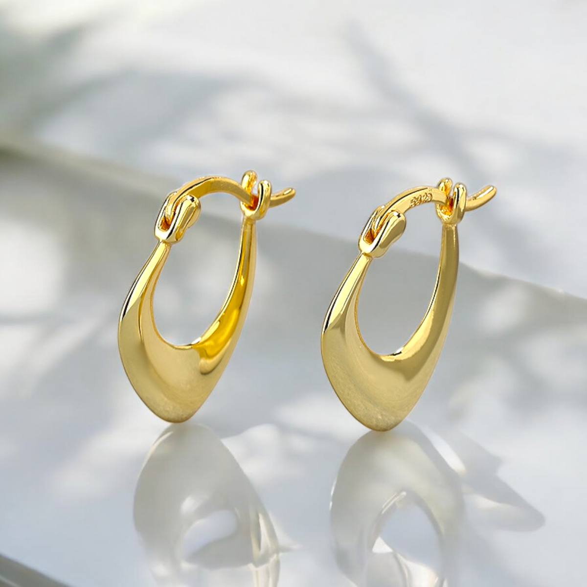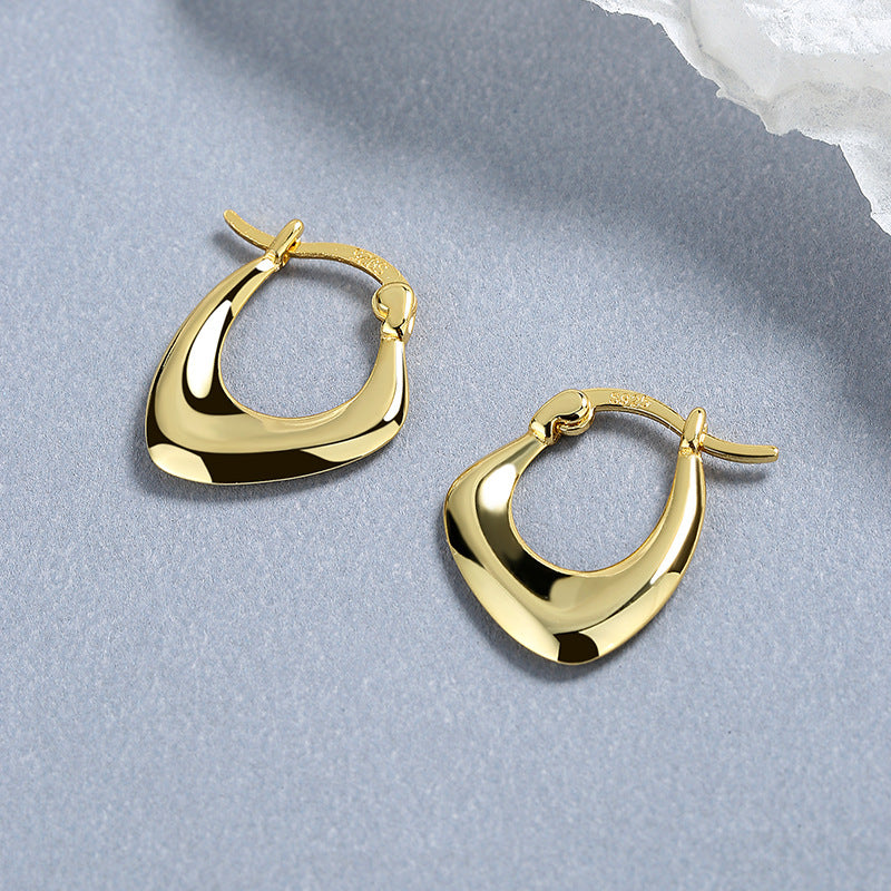 Featuring an asymmetrical curve these 18K Gold Plated hoops creates a glossy visual effect. Crafted in pure 925 silver, these hoops are lightweight and comfortable, making them perfect for all-day wear, whether you're running errands or hitting the town for a night out with friends.
