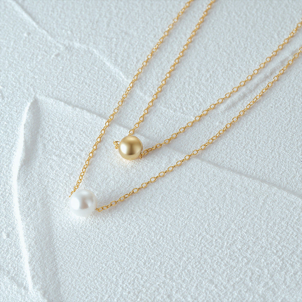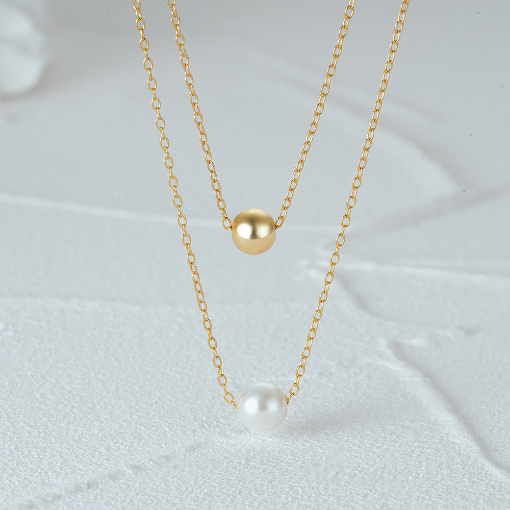 This delicate pearl necklace makes layering easy as it comes pre-layered with a golden ball on the first level and a lusturous shell pearl on the second layer. Set in pure 925 silver this necklace is as unique as it is trendy and would perfect on any casual look.