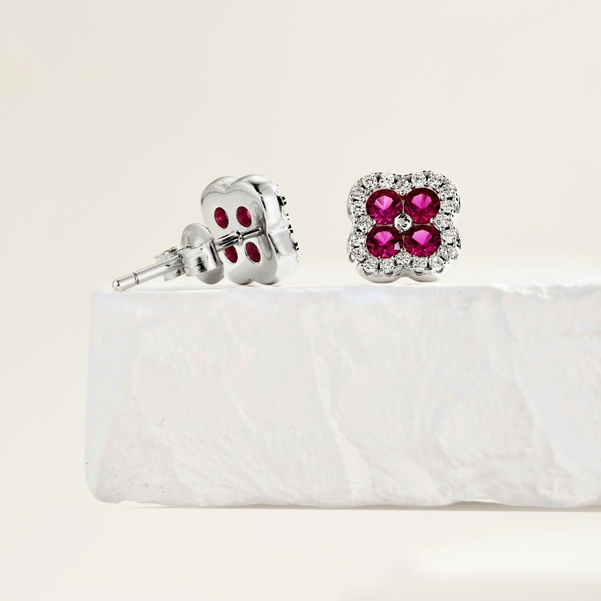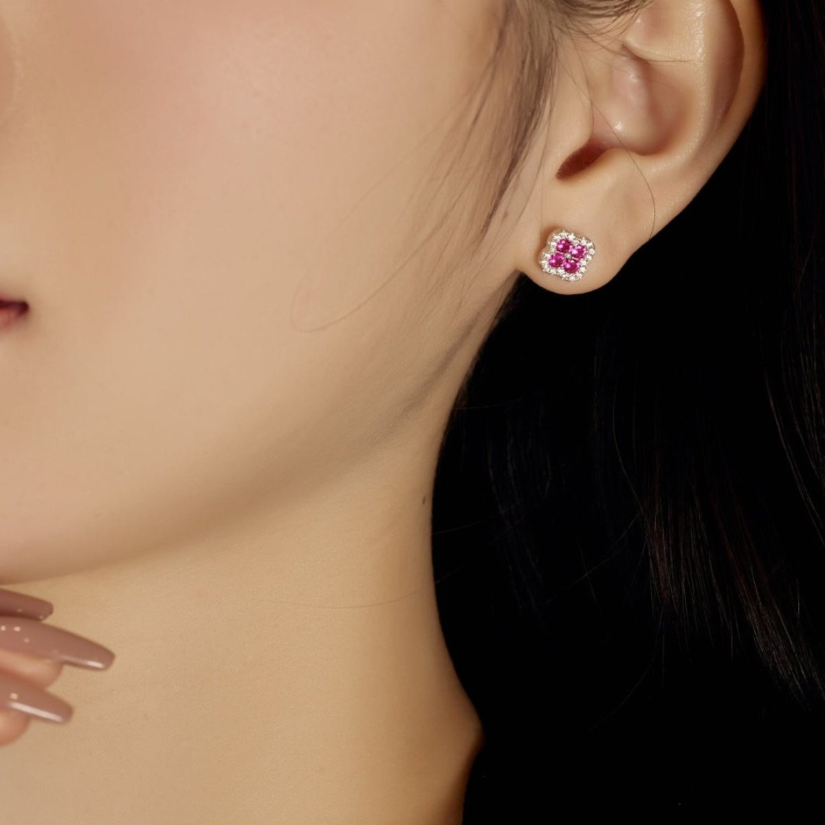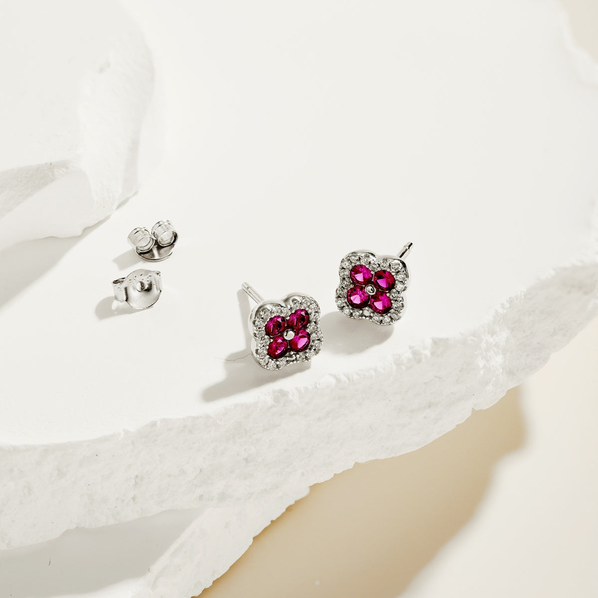 A dainty pair of royal pink clover earrings that are crafted to gleam and glow on your ear lobes. These pure 925 silver earrings can be paired with any attire but stands out best against white.