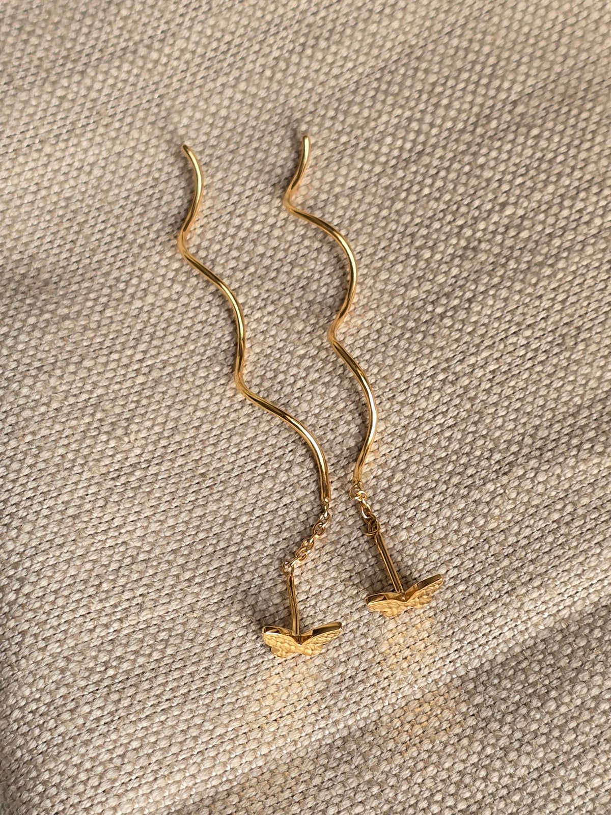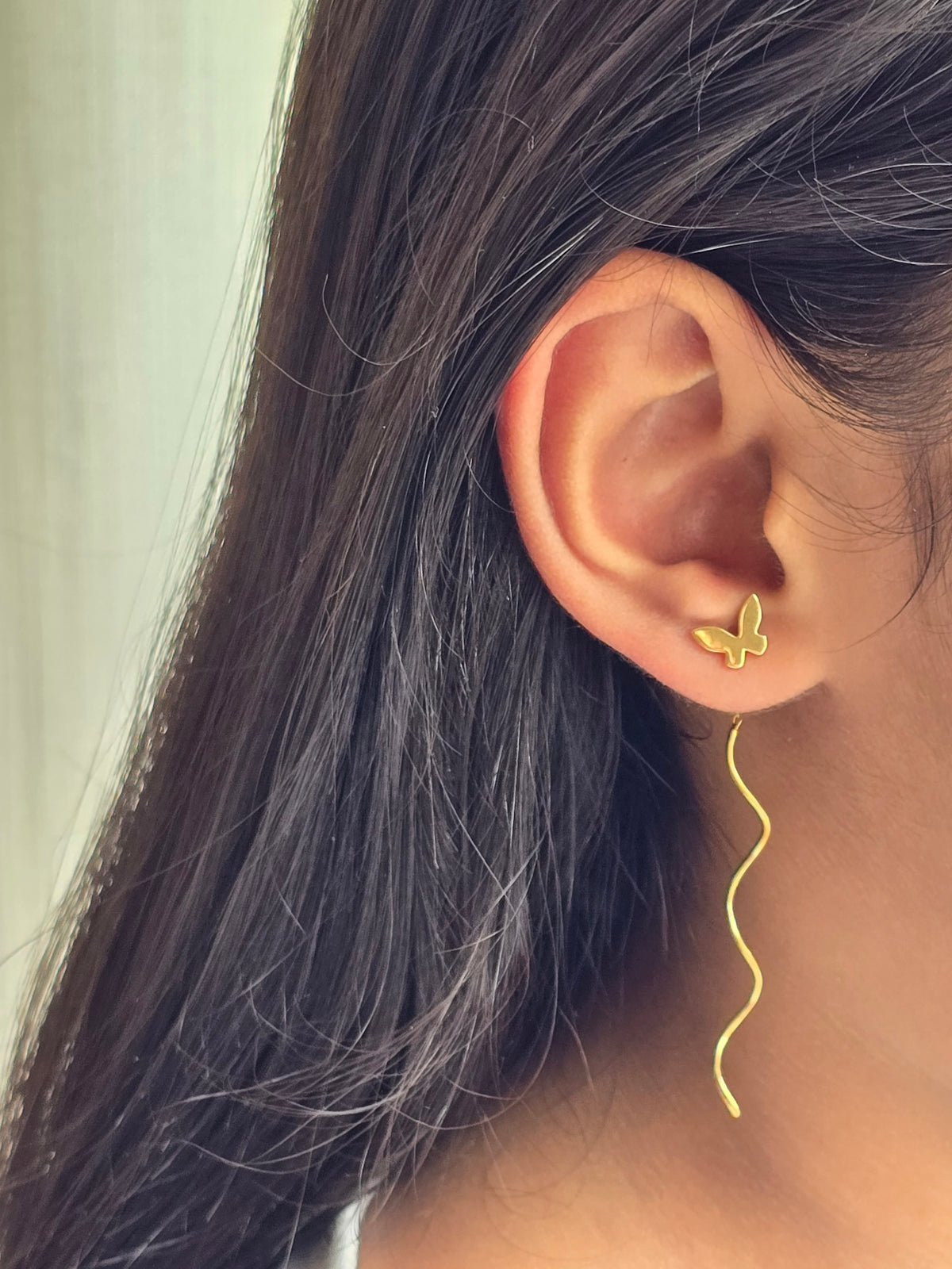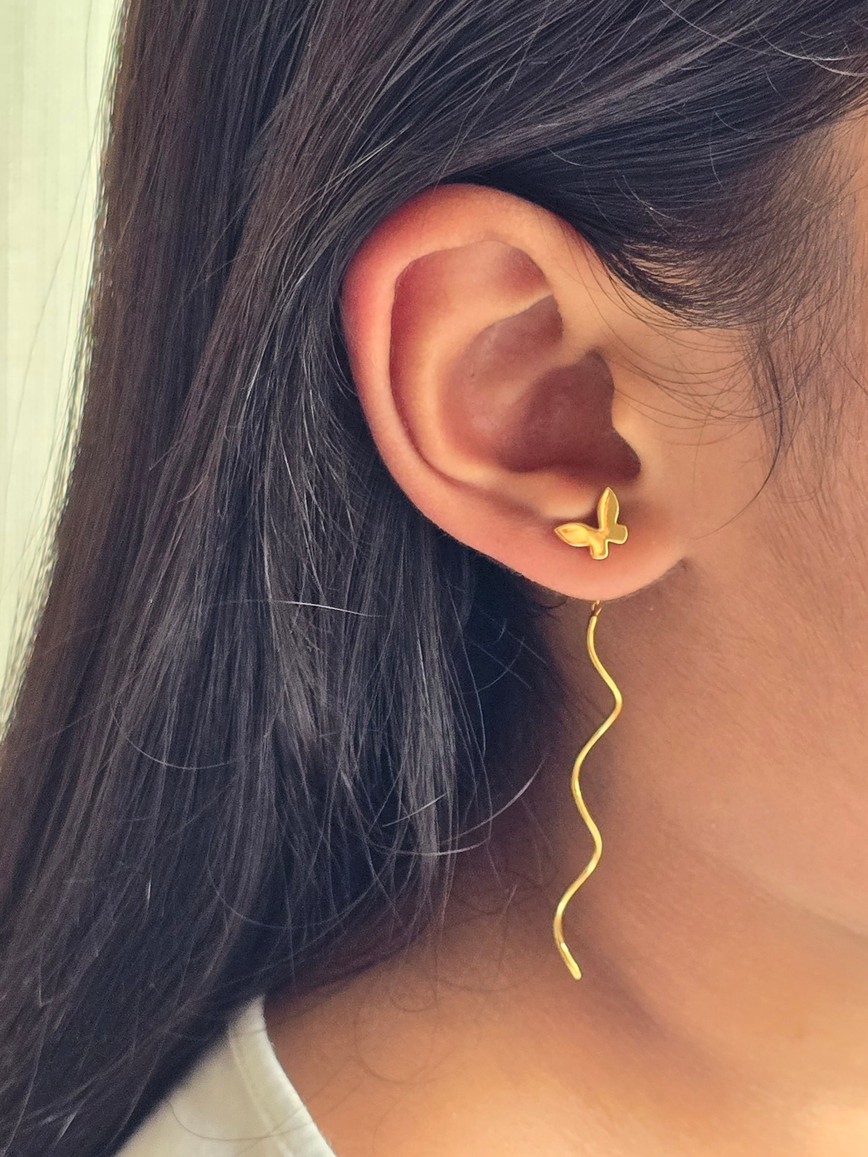 Gold Butterfly Curly Sui Dhaaga Earrings