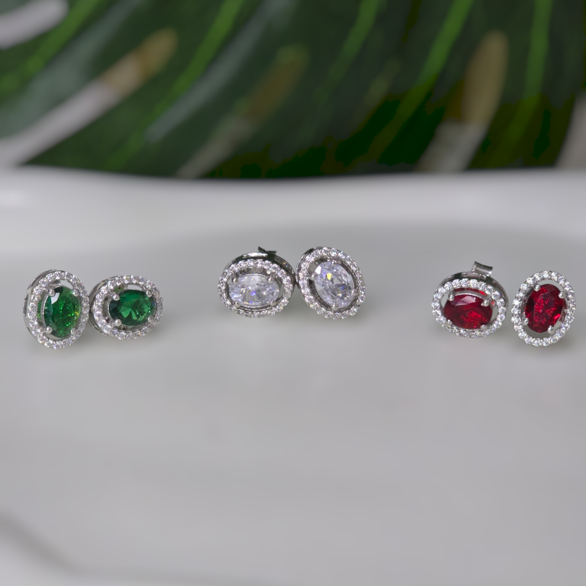 A must-have staple for every jewellery lover’s collection. Just your everyday oval solitaire earrings now available in colors of your choice. Crafted in pure 925 silver, these oval halo solitaire earrings feature a radiant central stone encircled by a delicate ring of CZs to enhance its shine.