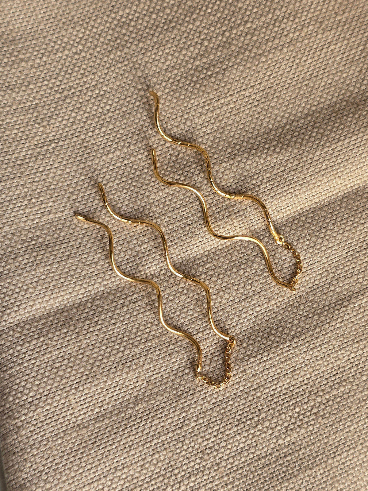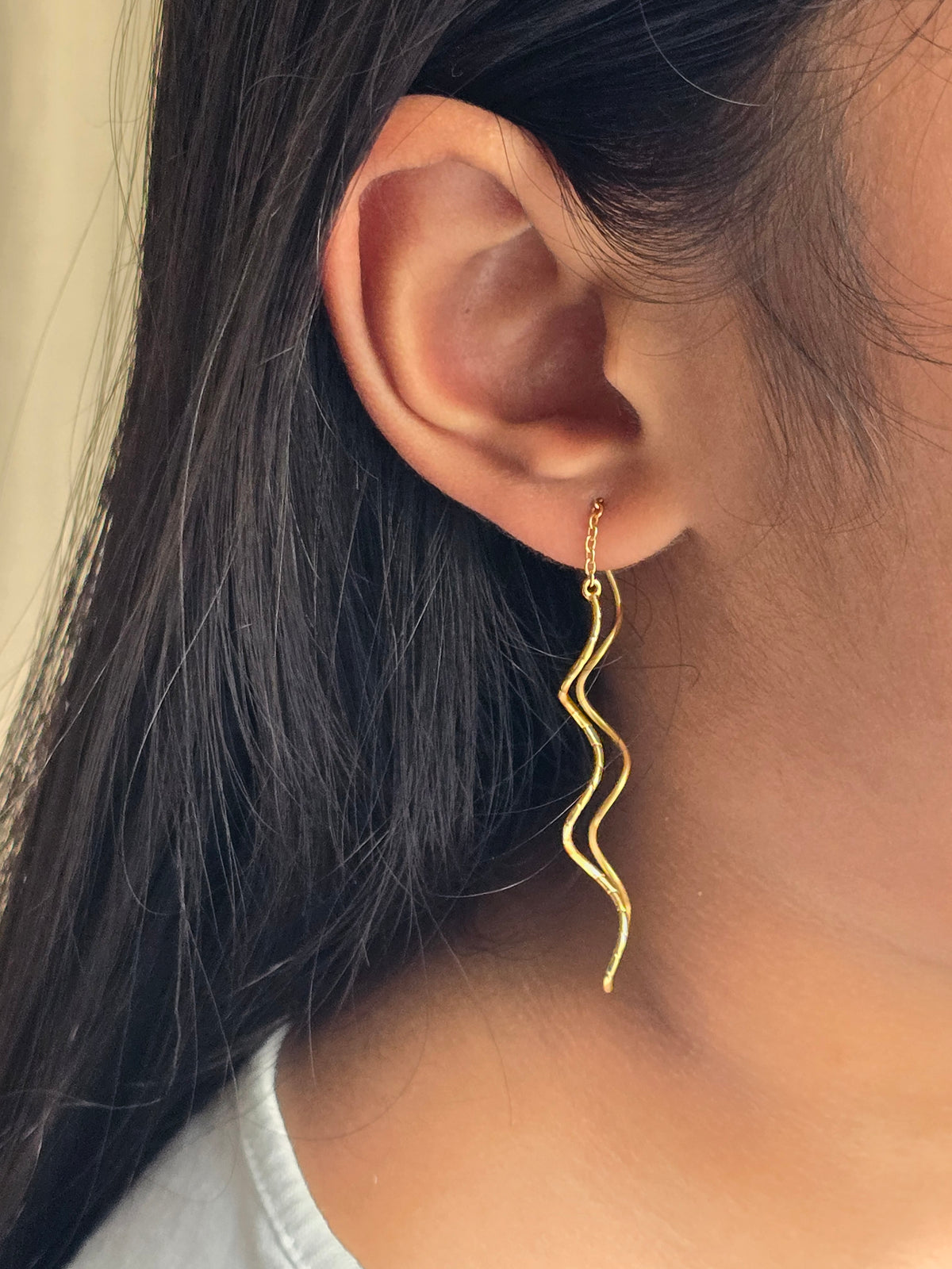 "Meet the Curl Edit – a playful twist on the classic sui dhaaga earring that can be worn in under 5 seconds! Crafted in pure 925 silver with an 18k gold finish, each design features a signature curled thread that flows effortlessly through your ear.