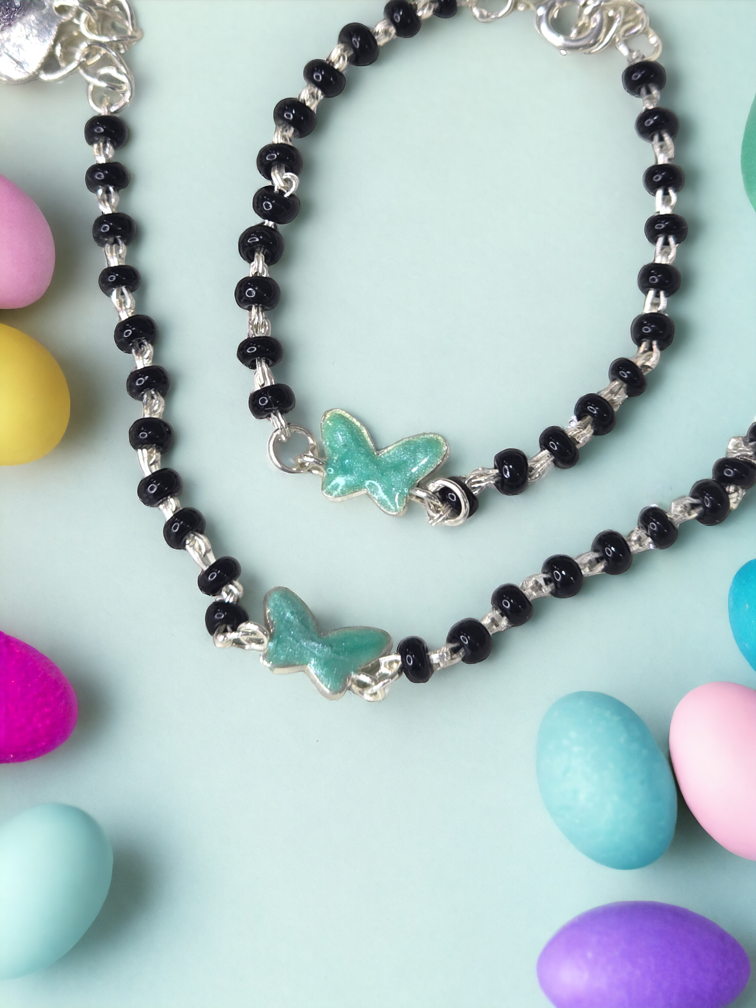 Silver Enamel Butterly Nazaria Kids Bracelet Pair