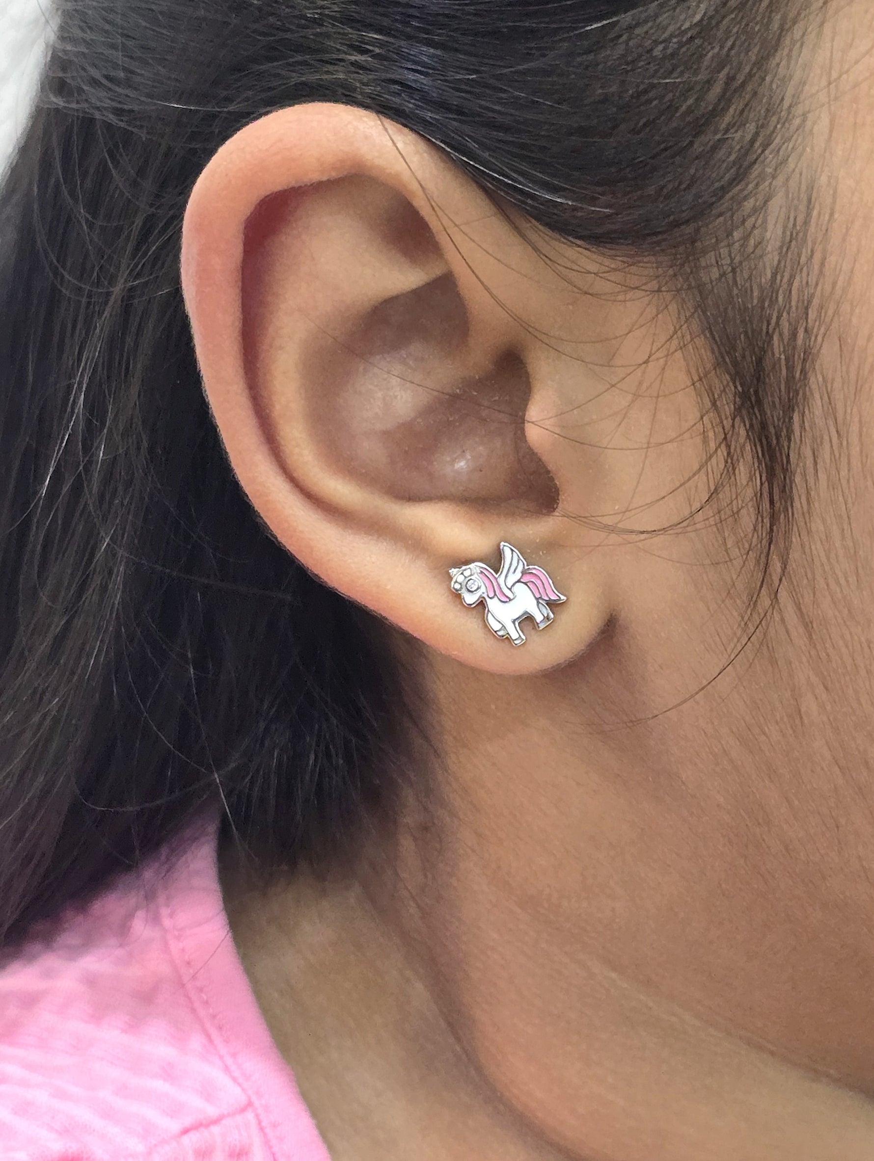 Silver Enamel Flying Unicorn Kids Earrings