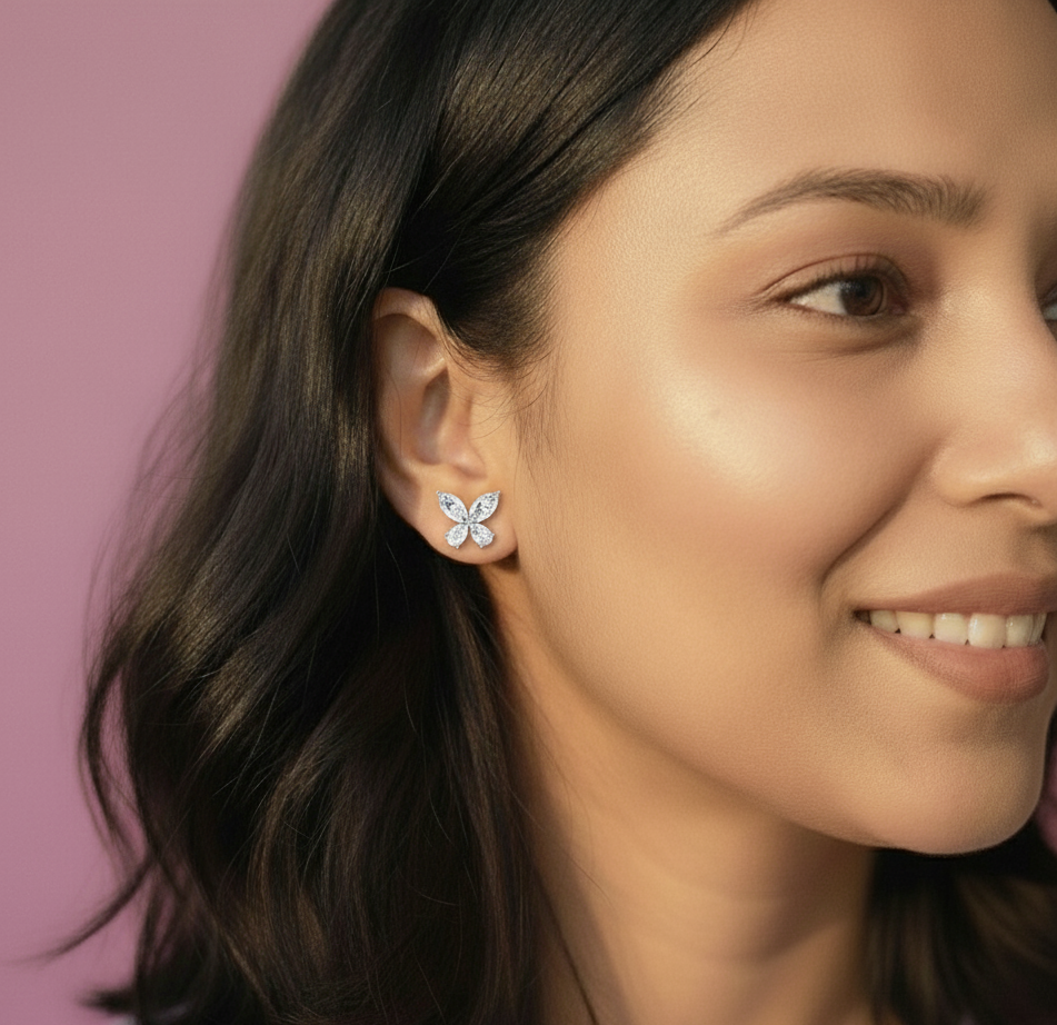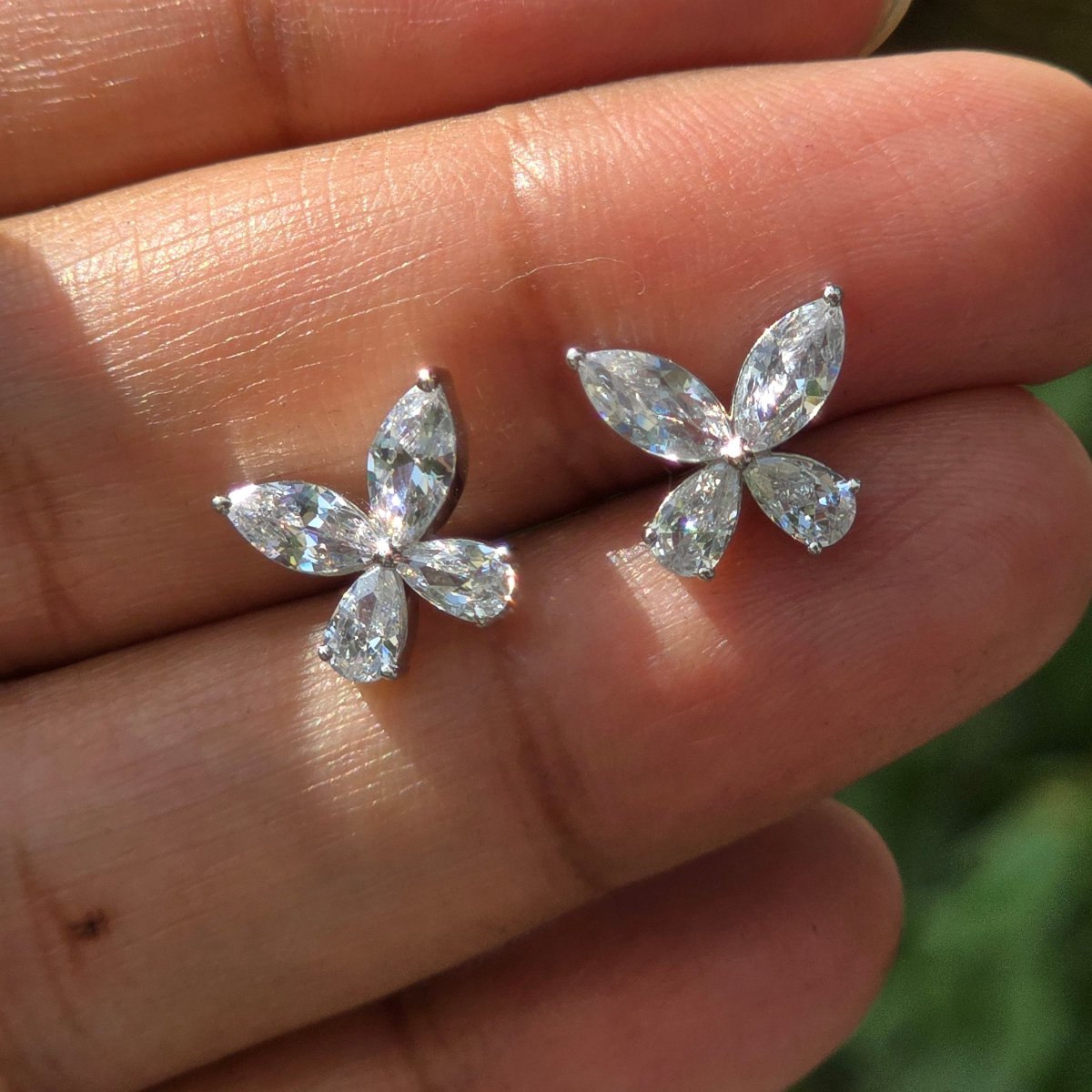Introducing our 'Sparkle Wings' Butterfly earrings, a grand fusion of elegance and nature's charm. Handcrafted with precision from high-quality 925 sterling silver, these enchanting earrings boast the timeless allure of marquise and pear shaped diamonds coming together to form a butterfly.