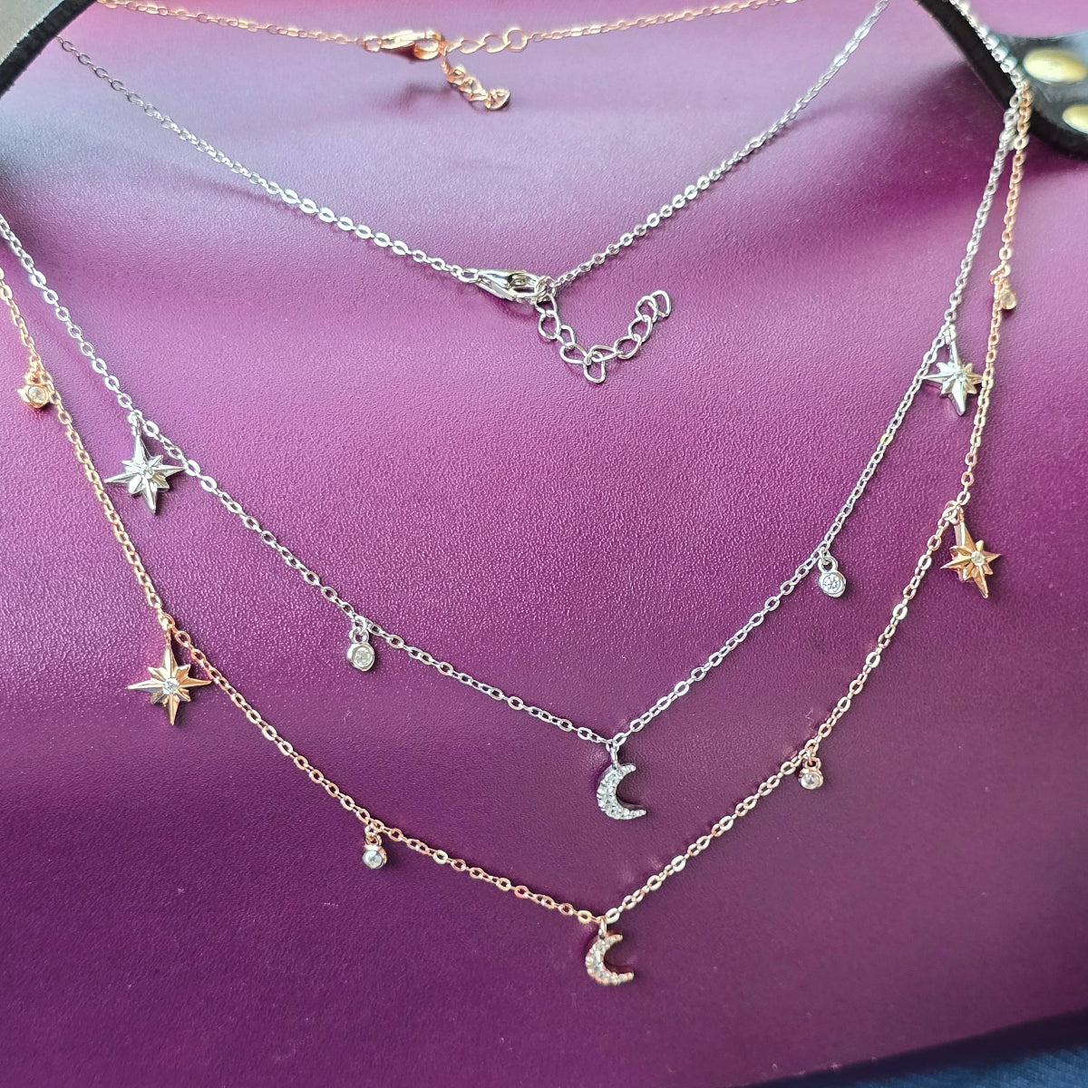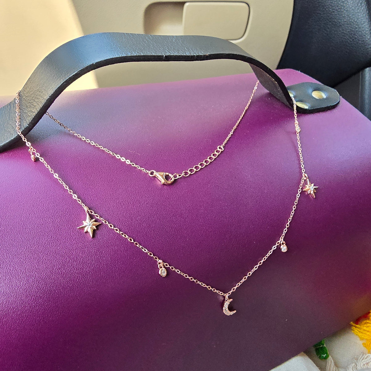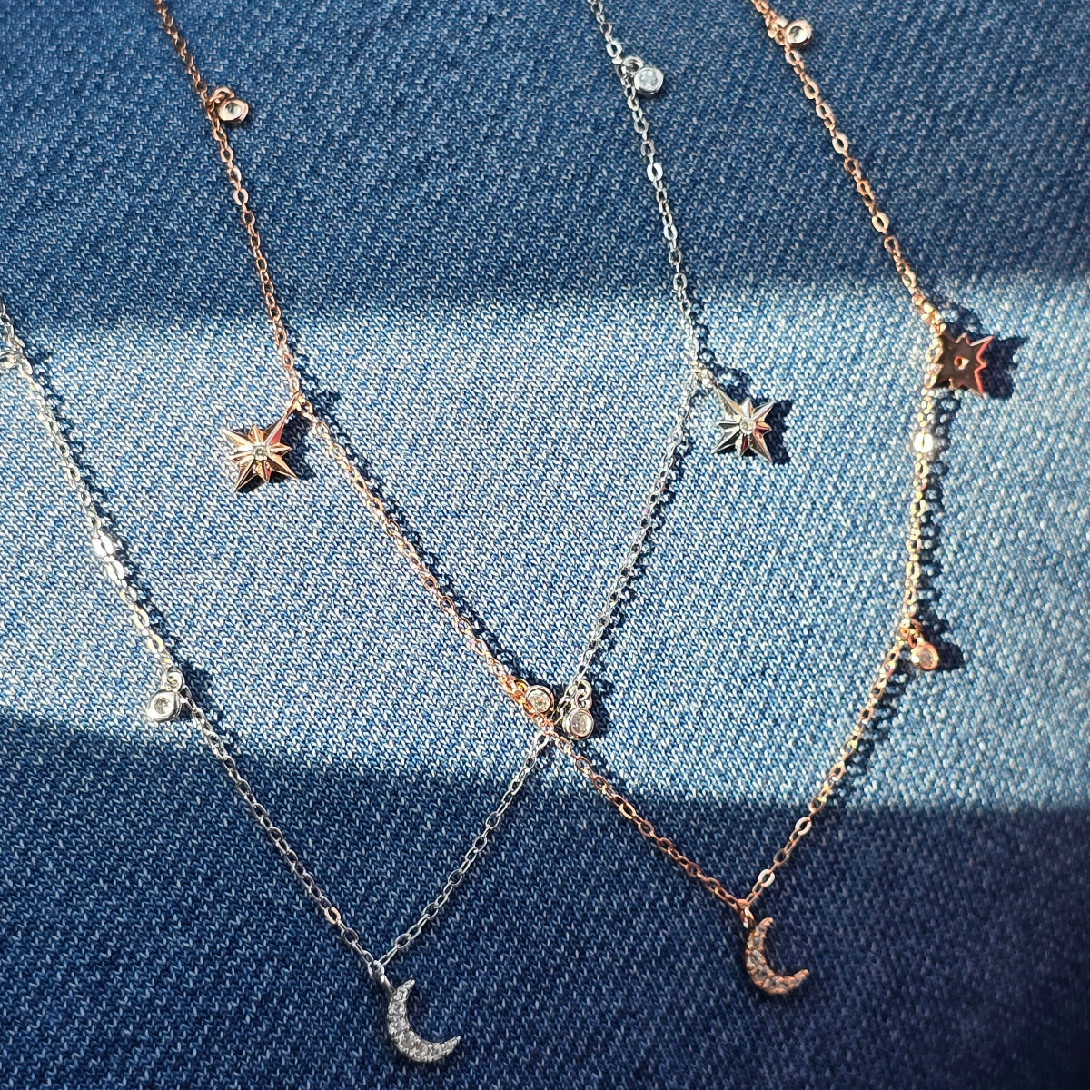 Delicate as a whisper and crafted in pure 925 silver, this charms necklace features tiny moon and star charms that twinkle softly along a fine chain — like stardust strung together. Perfect for layering or wearing solo, it’s a subtle statement for dreamers, stargazers, and anyone who believes in magic after midnight.